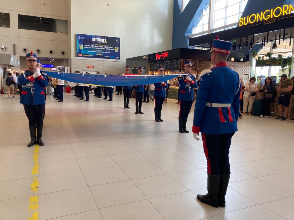 At the airport we were met by a brass band commemorating 26 June which is National Flag Day, and we were just in time to see the flag folded and marched out of the airport!