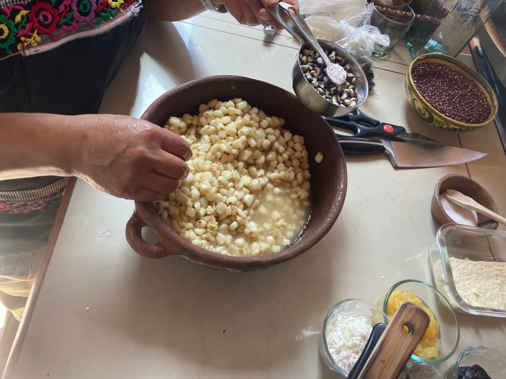 Irma had done some preparation beforehand, including simmering the corn in water with lime for three hours to cook it.