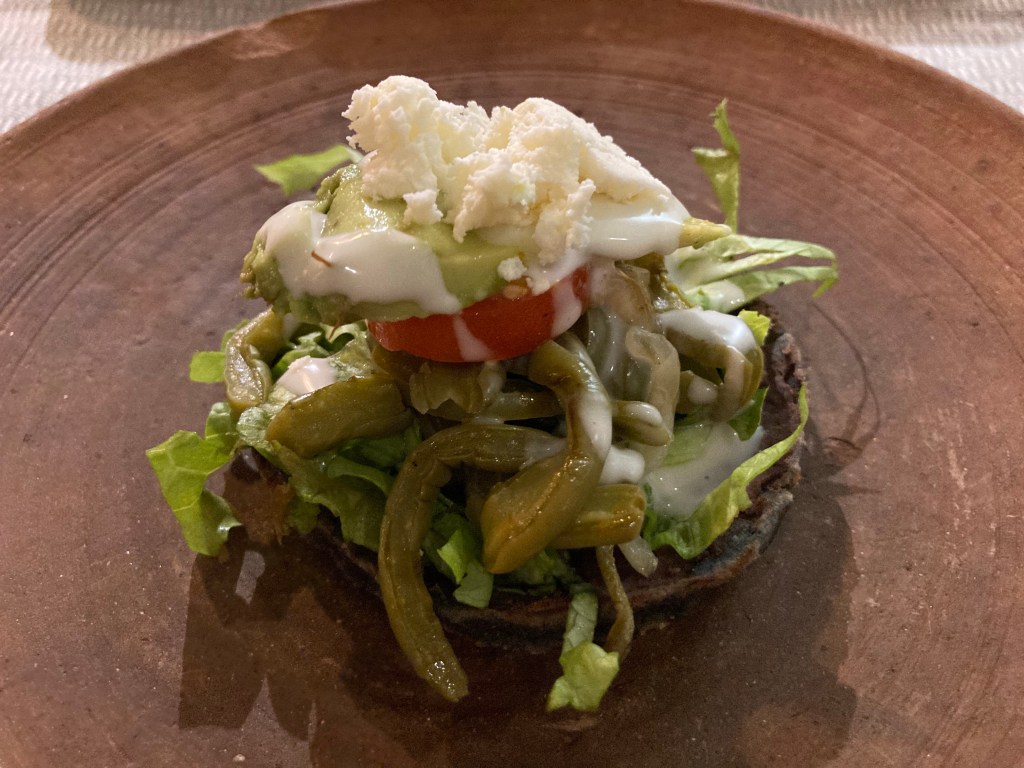 Creatures of habit, once we find a restaurant we like, we often return a second time, so it was back to Balil for another lovely meal. This time we started with some little sopes, one of which was topped with cooked strips of cactus which we had seen in the market. It had a texture similar to peppers but a fresher more astringent taste and I’ll certainly be looking out for it again.
