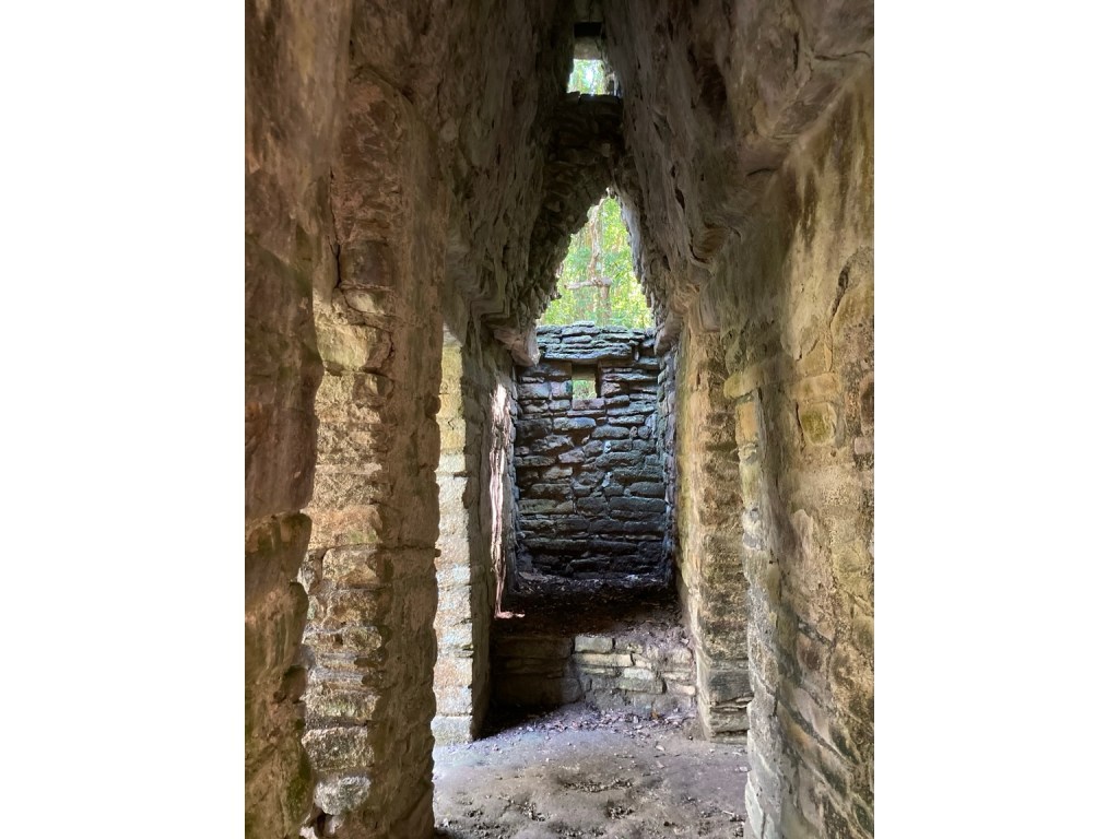 Mayan buildings use the corbel arch to achieve high-ceilinged structures with heavy stone, but it does have limitations. Thick walls, narrow rooms, and restricted space as can be seen here, but certainly durable.