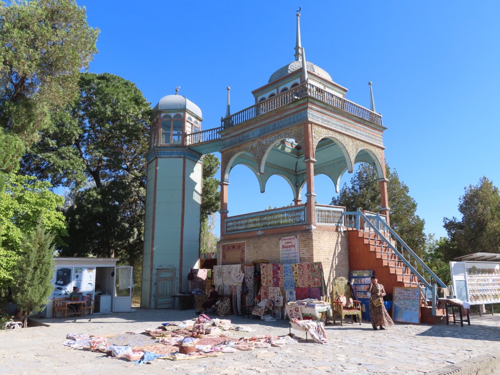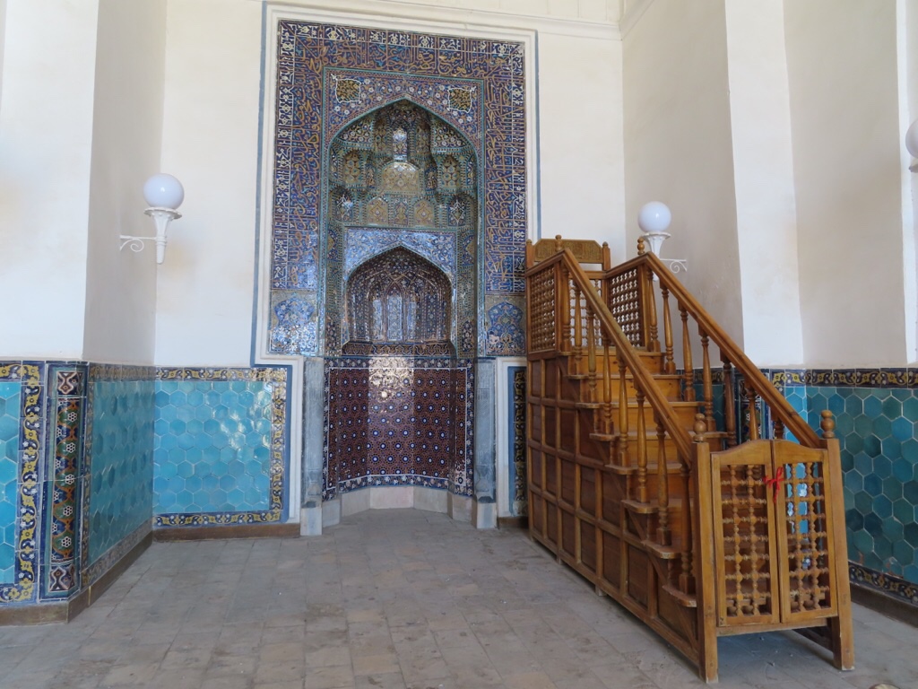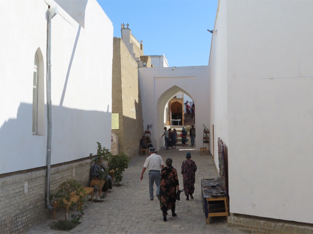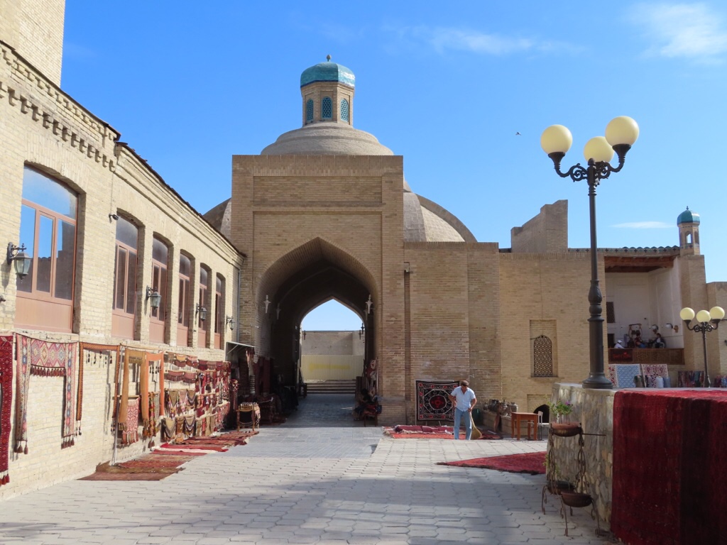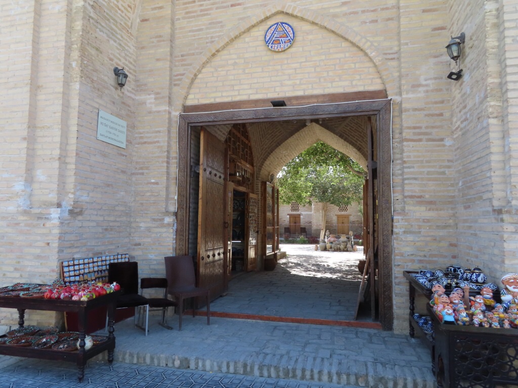Just a few steps took us to the C16th Kukeldash Madrassah, once the largest Islamic school in Central Asia but looking a little rundown apart from some souvenir shops …