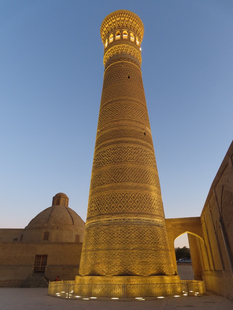 So, as we head further along the Silk Road, I’ll leave you with an evening shot of the Kalyan Minaret lit up after dark … next stop, Samarkand!
