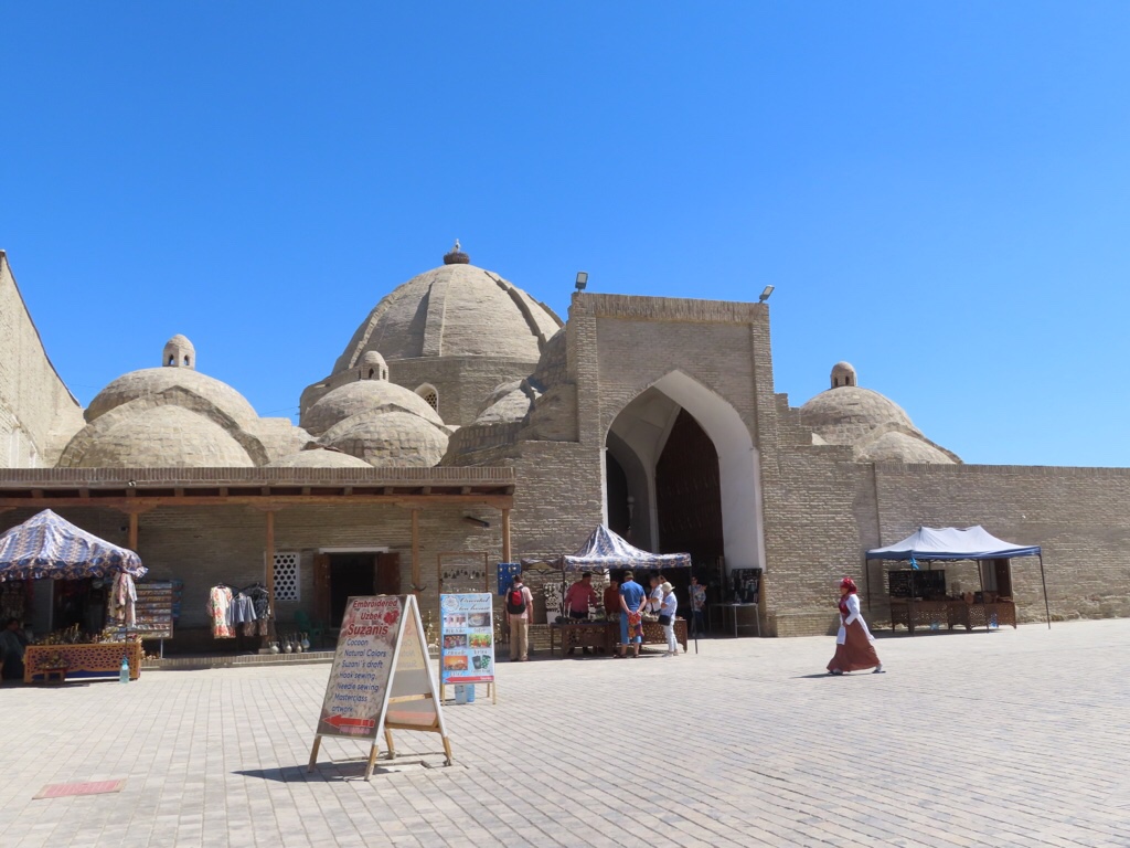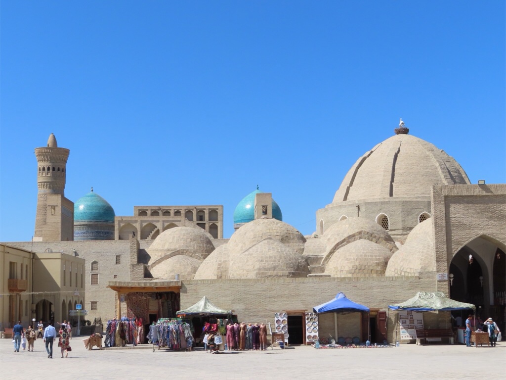 The C16th trading domes became a symbol of Bukhara’s status as a Silk Road city and were built at busy crossroads providing a means of controlled and convenient trade. The large domes remained cool and were filled with shopping stalls and handicraft shops, each named for its particular speciality. Today four remain, filled with craft and souvenir stalls.