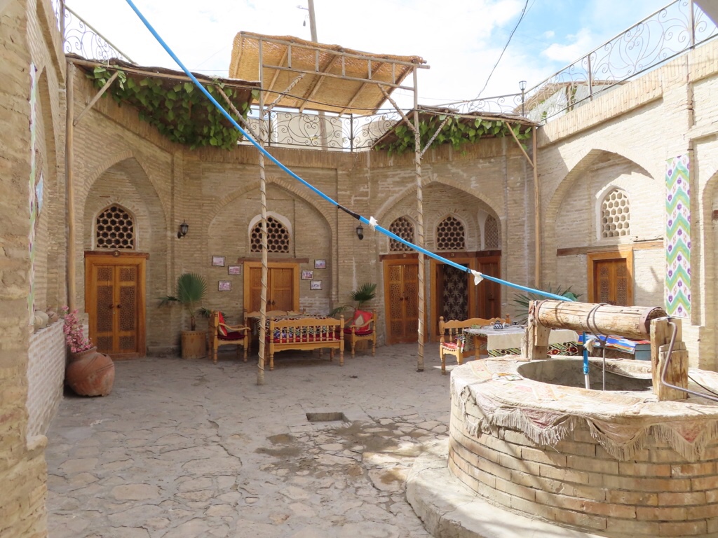 The train chugged along for 6hrs and 400km, passing cotton field to begin with, then desert and finally more cotton as we approached Bukhara, so rather than spend time looking out of the window, I finally had a chance to get stuck into my book. I mentioned The Carpet Ride to Khiva in one of the last posts, but had read little more than the introduction but reading further, I began to suspect that the house at No 57 where the author stayed in Khiva is now Meros B&B … and having checked with Jaloladdin, he confirmed Aslan had lived with his family for 7 years and they still keep in touch … small world!