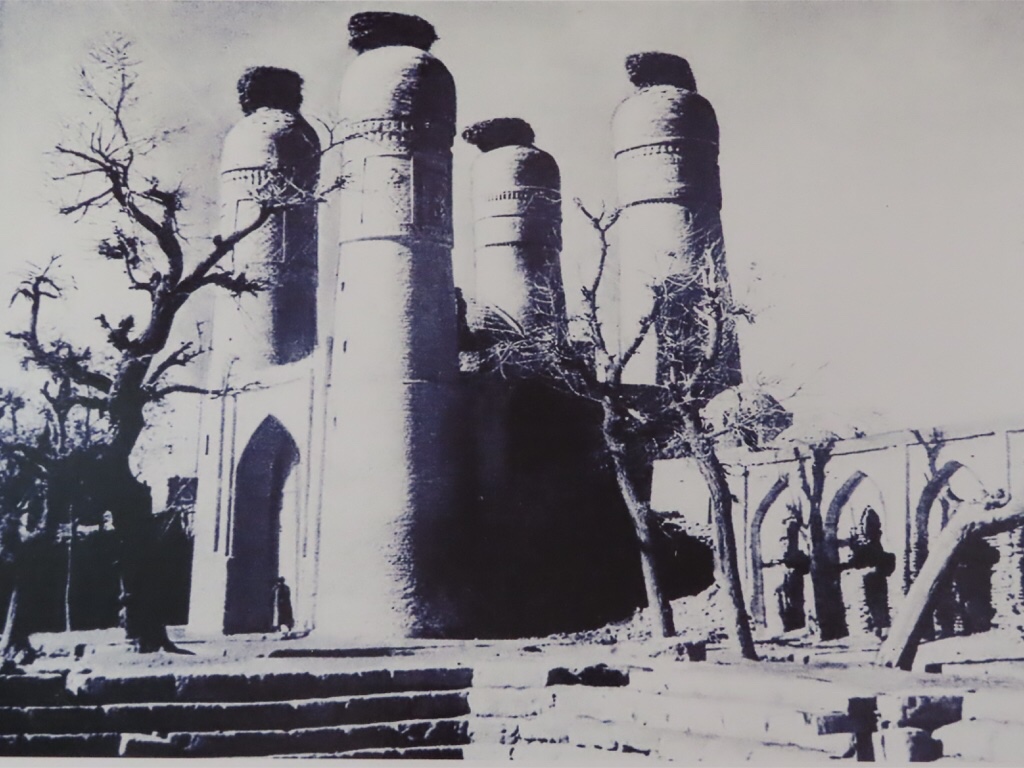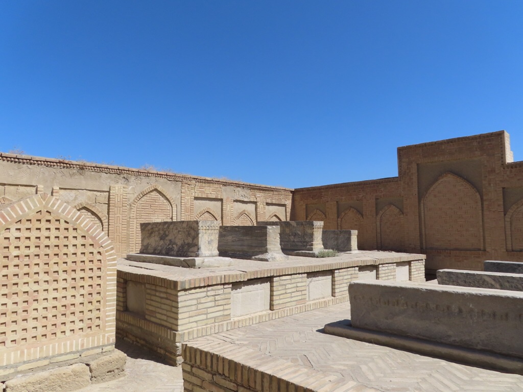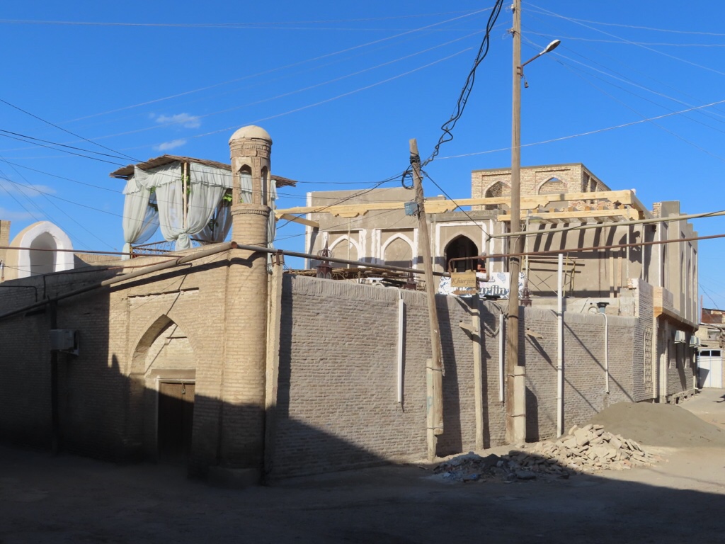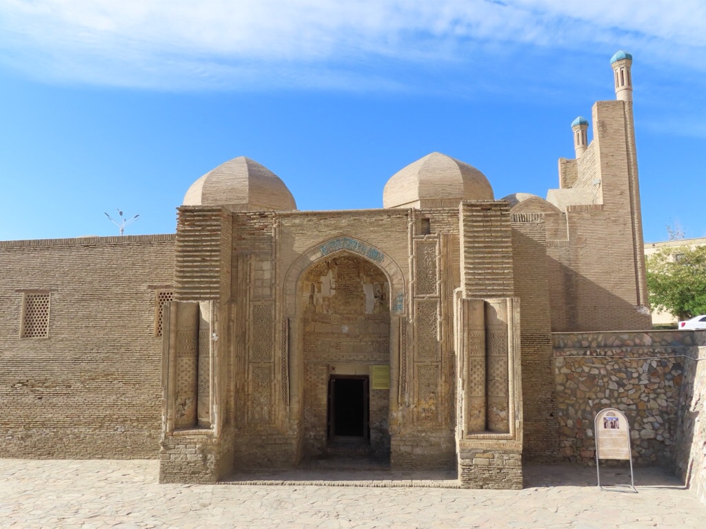 The Khoja Gaukushan Ensemble was built by the Juabari family in the C16th and is rare as it remains untouched by later redevelopment. Gaukushan refers to the slaughter of cattle so there might once have been an abattoir here. It is on the junction of two medieval streets and the Shah Rud canal, it comprises a mosque, a minaret, two madrasas and a hauz which is a pond.