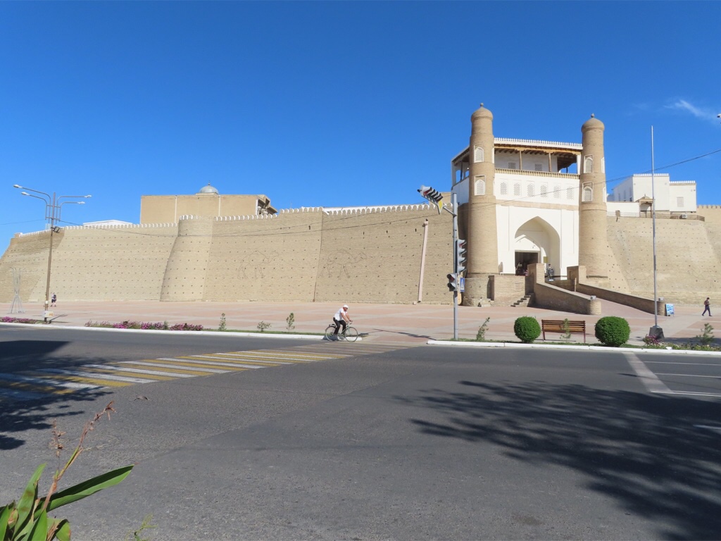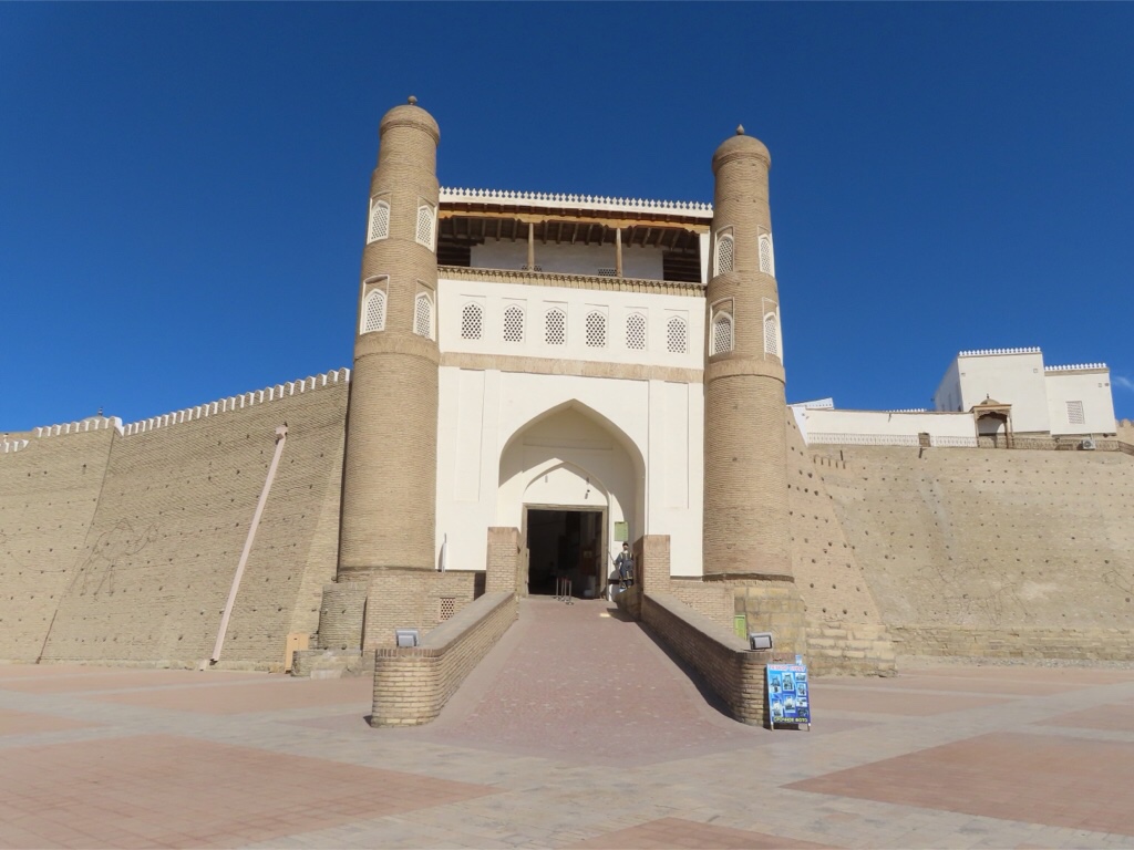 Across the road was the Ark, the fortified city within a city which was the residence of the emirs of Bukhara. Its foundations were laid in the C4th BC but has been destroyed and rebuilt several times and in 1920 it was bombed by the Red Army, destroying around 80%. The most impressive part was the entrance …