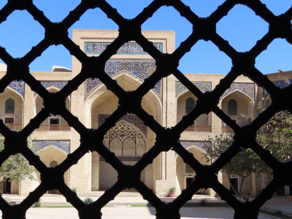 In the Soviet era the Mir-i-Arab was the only madrasa allowed to operate throughout the entire realm and remains in active use, offering a 4 year course to 120 students in religious and general subjects. It is closed to visitors but peering through the pandzhara was like peeking into the quad of an Oxford college!