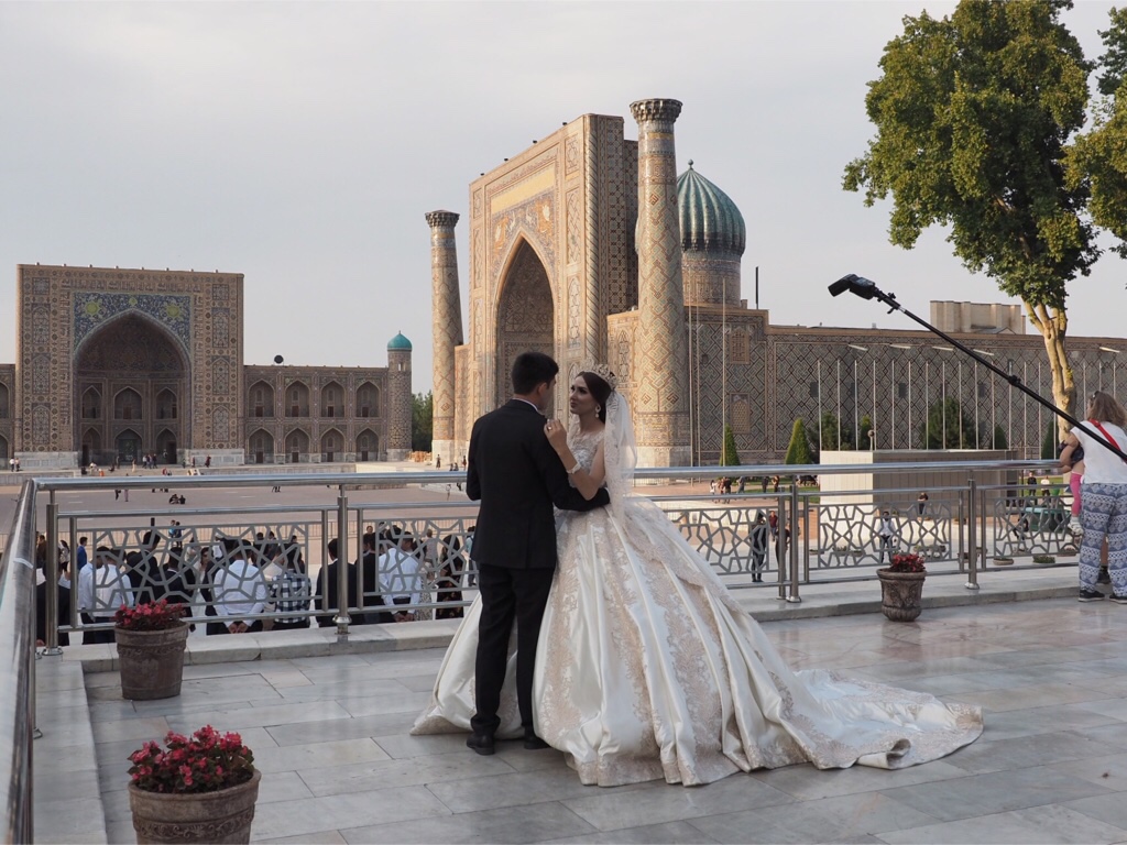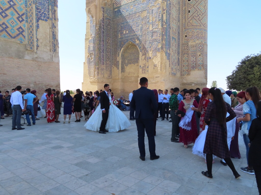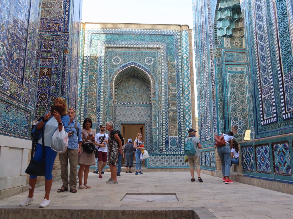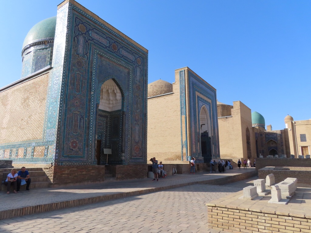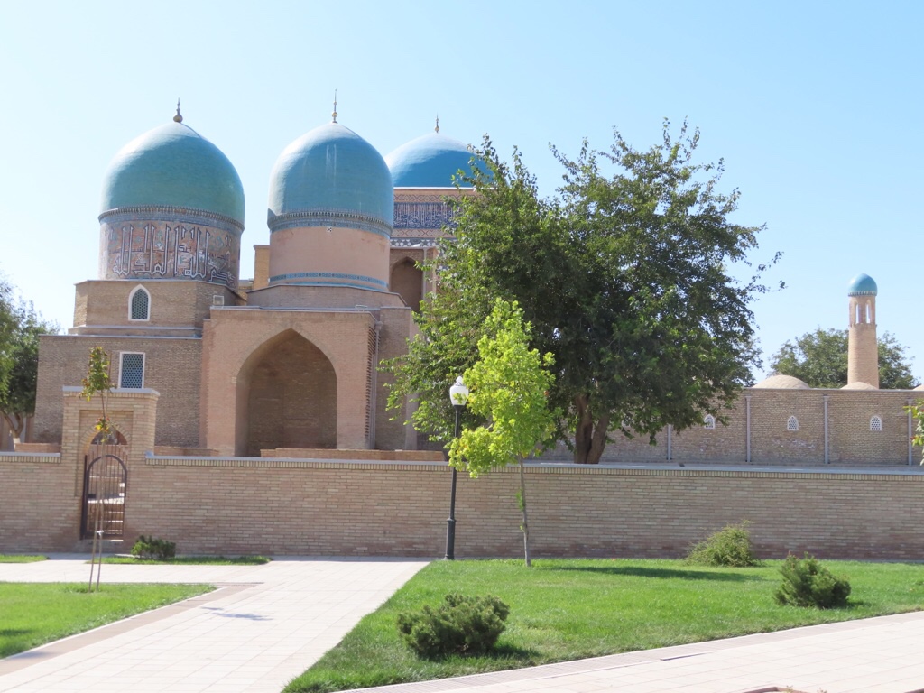 Just a few steps took us to the C16th Kukeldash Madrassah, once the largest Islamic school in Central Asia but looking a little rundown apart from some souvenir shops …