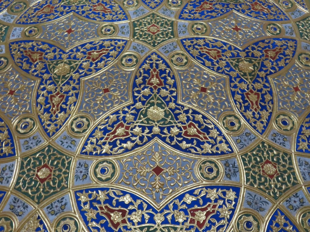 Sitorai Mokhi-Khosa Palace was the countryside residence of Bukhara emirs, now just on the outskirts of the city. The location is always cool, and was chosen by an ancient method of putting sheep carcasses at the likely construction sites and opting for the one with least decomposition. The original building from the mid C19th was replaced some years later by another emir, Muzaffar-Khan who devoted the palace to his wife Sitora. When she died, it was named Sitorai Mokhi-Khosa, translated from Tajik as ‘Star-like, Moon-like Palace’ but most existing buildings were completed in 1918 for the last emir of Bukhara, Alim Khan by the best Bukhara masters of the time.