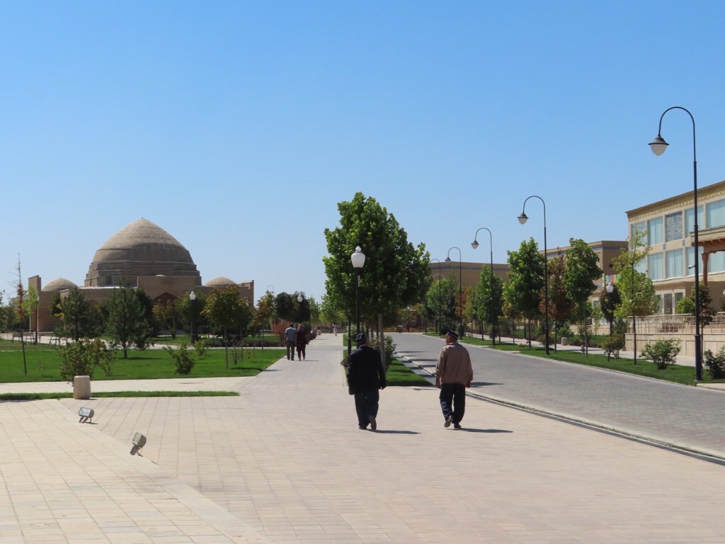 Here in Bukhara there isn’t a wall separating the old city from the rest, but it does form a core with a main souvenir-lined tourist thoroughfare linking the sights, but you don’t have to wander far to find local houses, old buildings yet to be restored and people going about their everyday lives, Most of the historic buildings are C16th, with some even older and beyond is modernity, with a dual carriageway ring road and wide roads lined with shops which we saw on our trips out.