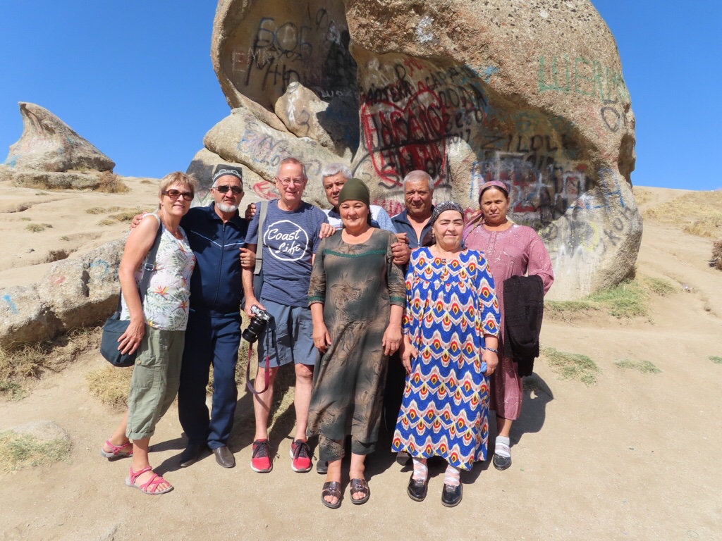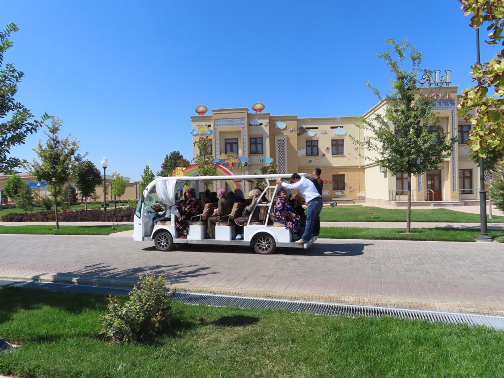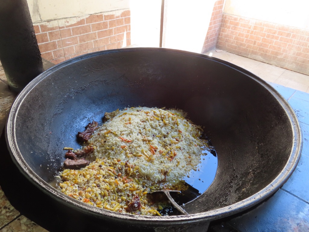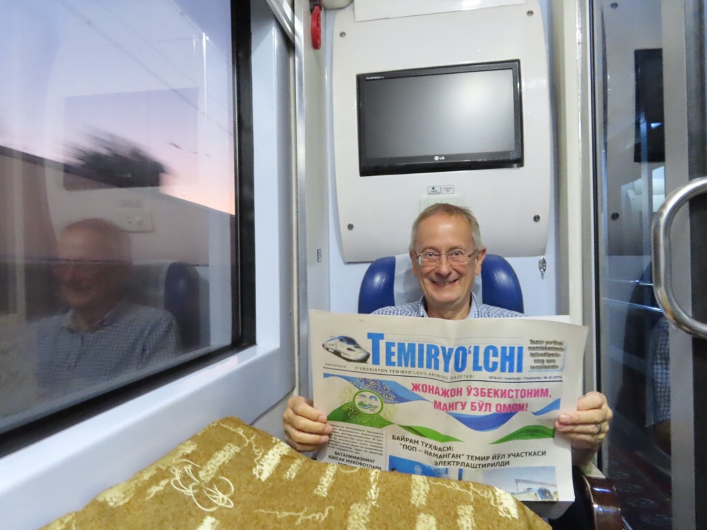 The train chugged along for 6hrs and 400km, passing cotton field to begin with, then desert and finally more cotton as we approached Bukhara, so rather than spend time looking out of the window, I finally had a chance to get stuck into my book. I mentioned The Carpet Ride to Khiva in one of the last posts, but had read little more than the introduction but reading further, I began to suspect that the house at No 57 where the author stayed in Khiva is now Meros B&B … and having checked with Jaloladdin, he confirmed Aslan had lived with his family for 7 years and they still keep in touch … small world!