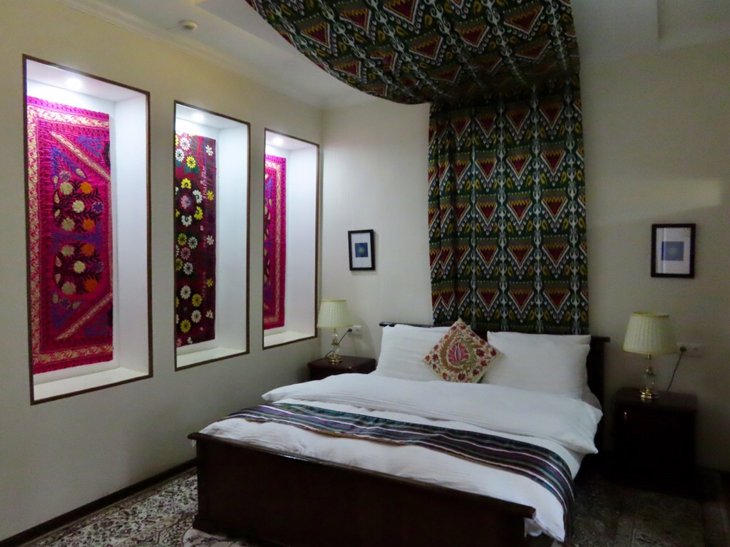 We were met at the station and welcomed at Hotel Khurjin by Avozshod who told us it was a restored C19th madrassa named for an Uzbek saddlebag, as the building splits and opens into two courtyards.
