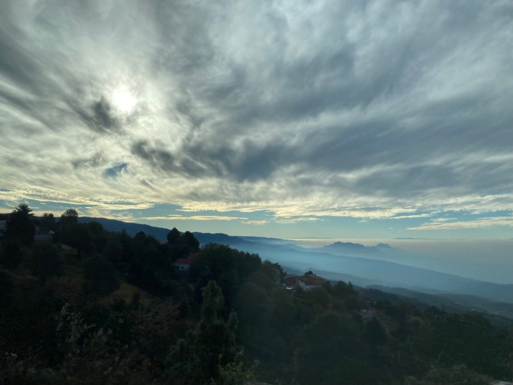 We walked back to the bus, and then had a long drive back to Palenque, seeing the sun set on the way … and arriving at 8pm.