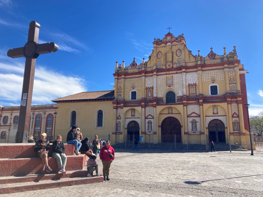 As we walked through the Barrio del Cerrillo, Anna started to talk about Chiapas and San Cristobal. The town was begun by the Spanish as a military fort in 1528. Its elevation in the highlands means that it sees chilly nights and warm days, but temperatures are pretty constant all year. Chiapas, like Oaxaca has a large indigenous population with 12 distinct groups. Here they are directly descended from the ancient Maya civilisation, but each group has developed its own unique customs and culture.