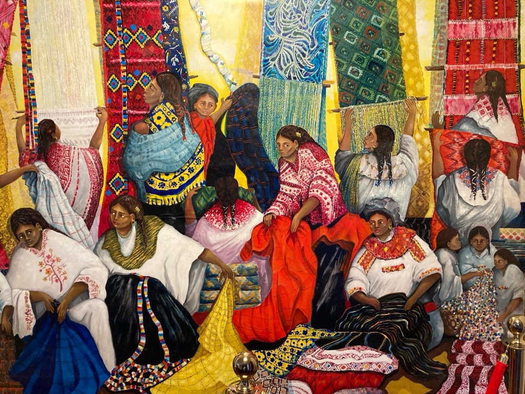 … but I was drawn to these colourful images by a local artist called Fulgencio Lazo filled with images of weaving and cotton reels!