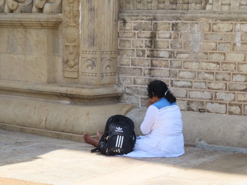 As we walked clockwise round the dagoba, we saw people taking a quiet moment in any scrap of shade they could find.