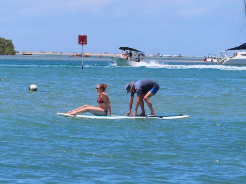 Another day out was to Bribie Island, 60kms north of Brisbane up the Bruce Highway. It is a sand island separated from the mainland by the Pummicestone Passage and the Bridge that crosses was the longest, pre-stressed, pre-cast concrete bridge in Australia when built in 1963. We headed for Woorim Beach on the surf side and while it was fairly calm, we had fun in the warm waves.