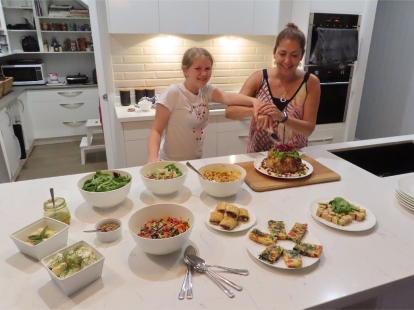 It has been so fabulous so spend Christmas with all the family together. We spent Christmas Eve preparing food together ready for Christmas Day, with everyone joining in and much hilarity. We were certainly not preparing a full turkey roast as we can remember doing in previous years in England, and instead went for Coronation Chicken, ham and a selection of inspired salads featuring curried cauliflower and pumpkin and lentils.