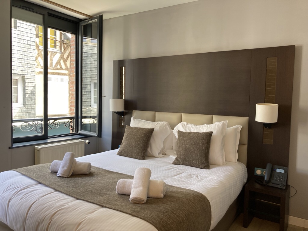 We are staying at the charming The Hotel du Dauphin in the heart of old Honfleur …