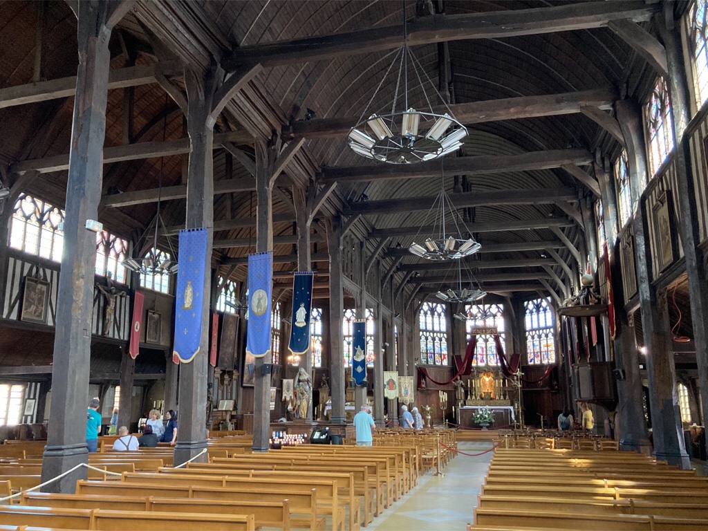 Honfleur’s most famous landmark is the wooden Église Sainte Catherine, which is France’s largest wooden church. Built by a local shipbuilder and intended to be a temporary structure to replace the previous church destroyed in the Hundred Years’ War, it has a ceiling resembling two upside-down ships’ hulls.