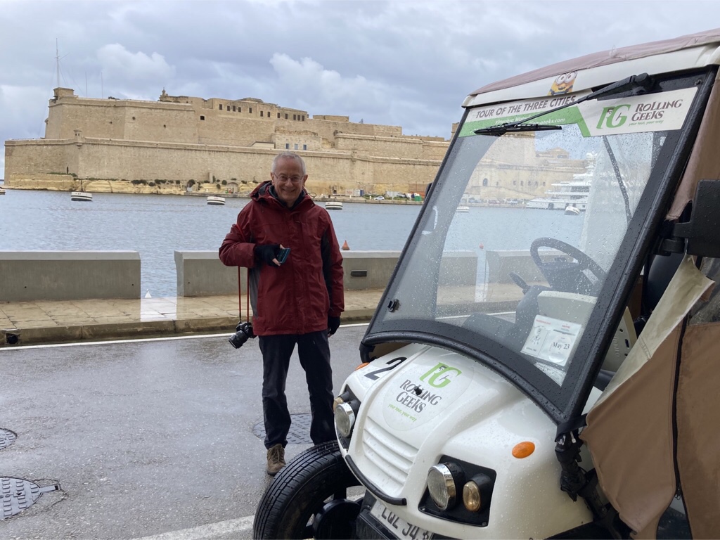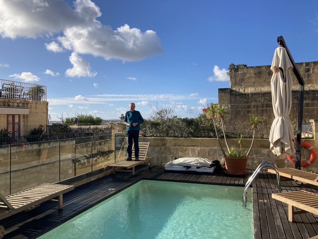 Valletta was a perfect destination for Chris’s 70th birthday trip. Despite it being slightly cooler than we had hoped, we managed to dodge the worst of the rain. The hotel was really comfortable, the staff made our stay a real pleasure and the daily jacuzzi did wonders for the knee! And as for the birthday surprise, well that was definitely a success and the new knee coped admirably with the steps and slopes of the city, clocking up a splendid 21 miles.