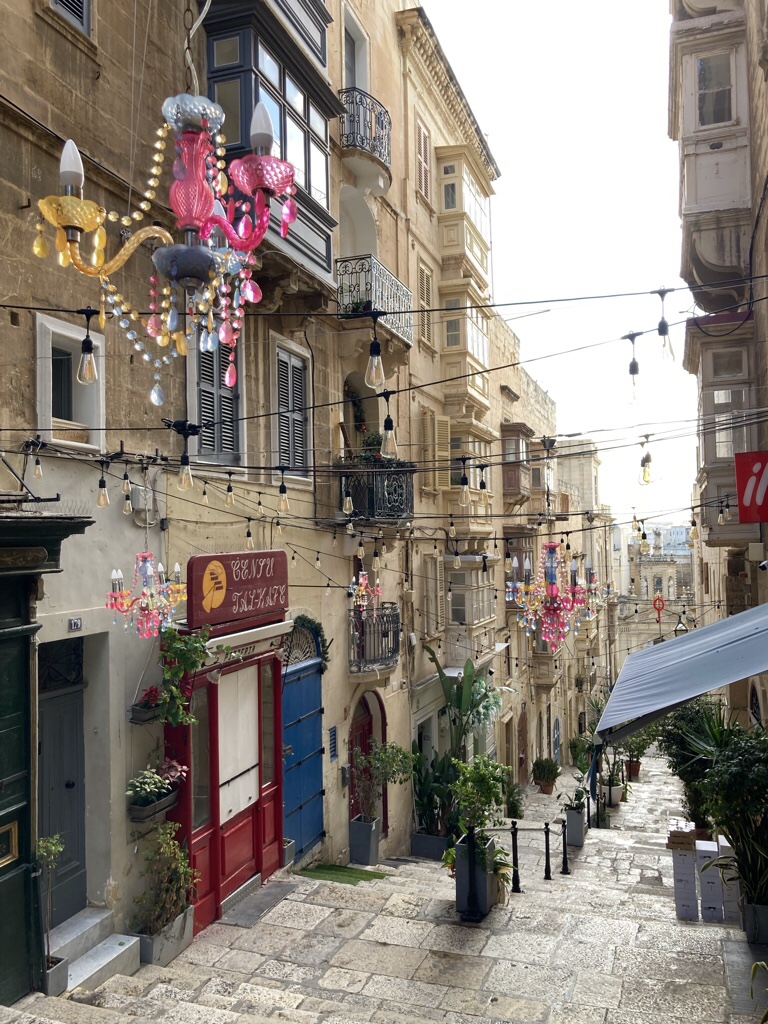 Legligin is a cosy basement wine bar offering a set seven course tasting menu but happy to offer vegetarian alternatives. Well we had a feast! They helped us choose the perfect Maltese wine to accompany our meal, a fruity red blend called Fenici, which pays tribute to the Phoenicians, who in the first millennium BC, spread the winemaking culture throughout the Mediterranean.