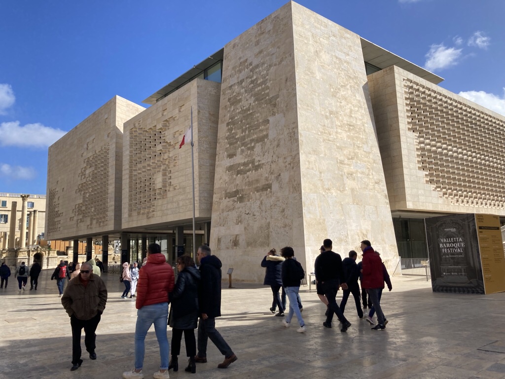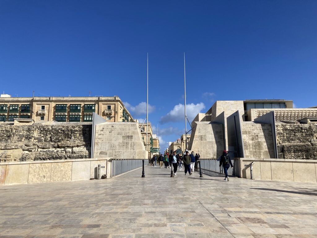 Looking out to sea is the Siege Bell Memorial for all those who fought and died for Malta in WWII. It commemorates the 50th anniversary of Malta receiving the George Cross.