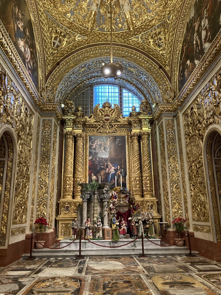 The very elegant Cafe Cordina opened in 1837, and in summer most choose to sit in the lovely square but for us, the intimate gilded interior was a perfect. We were spoilt for choice, but I chose the Maltese Kannol Rikotta – a Flaky pastry filled with sweet ricotta, chocolate chips with hazelnuts, pistachios, cinnamon and icing sugar while Chris tucked into Diplomatica – a Rum-soaked sponge, marzipan and cream between two layers of puff pastry, topped with icing sugar