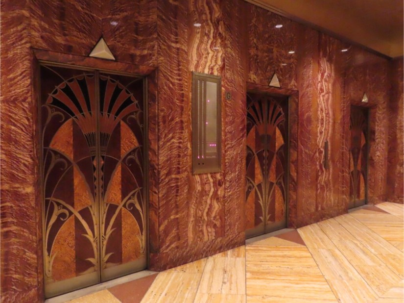 Last stop was the Chrysler Building which was briefly the world’s tallest building but today is more cherished for its amazing Art Deco beauty with car motif friezes, hood-ornament gargoyles and radiator-grille spire, not that you can see any of that from street level so we had to content ourselves with a peek in the lobby.