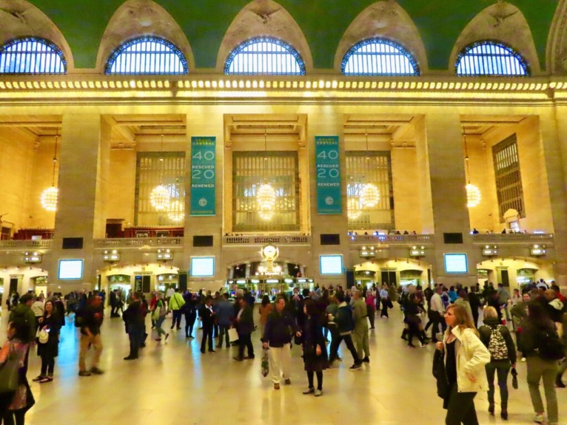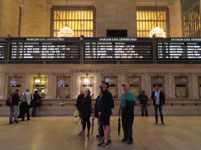 Ready for lunch, we headed for the huge food court below Grand Central Terminal where between us we had a hotdog, a pretzel, a slice of pizza and a steak sandwich. Grand Central Terminal is designed in the Beaux Arts style and with 44 platforms, is the largest station in the world. The main concourse has a barrel vaulted ceiling painted with a winter night sky of 2500 stars and is huge.
