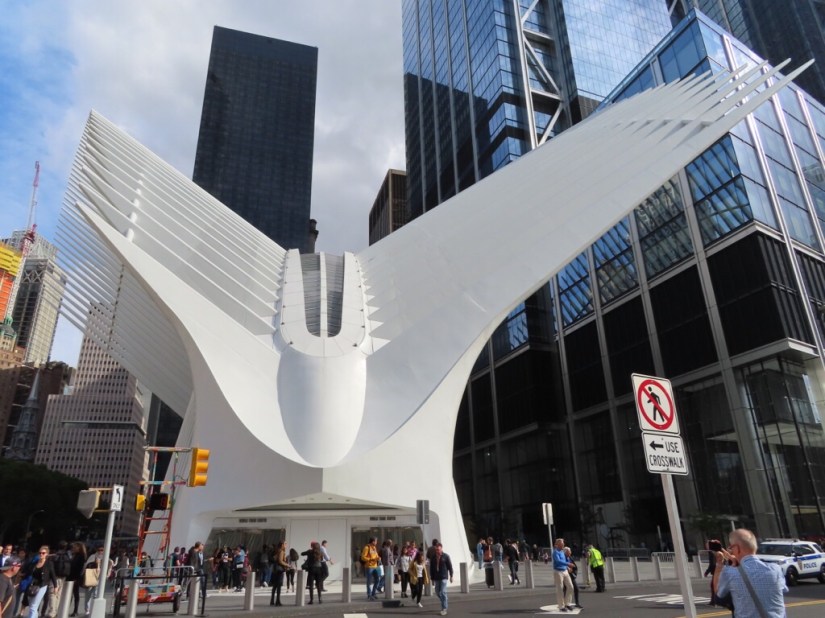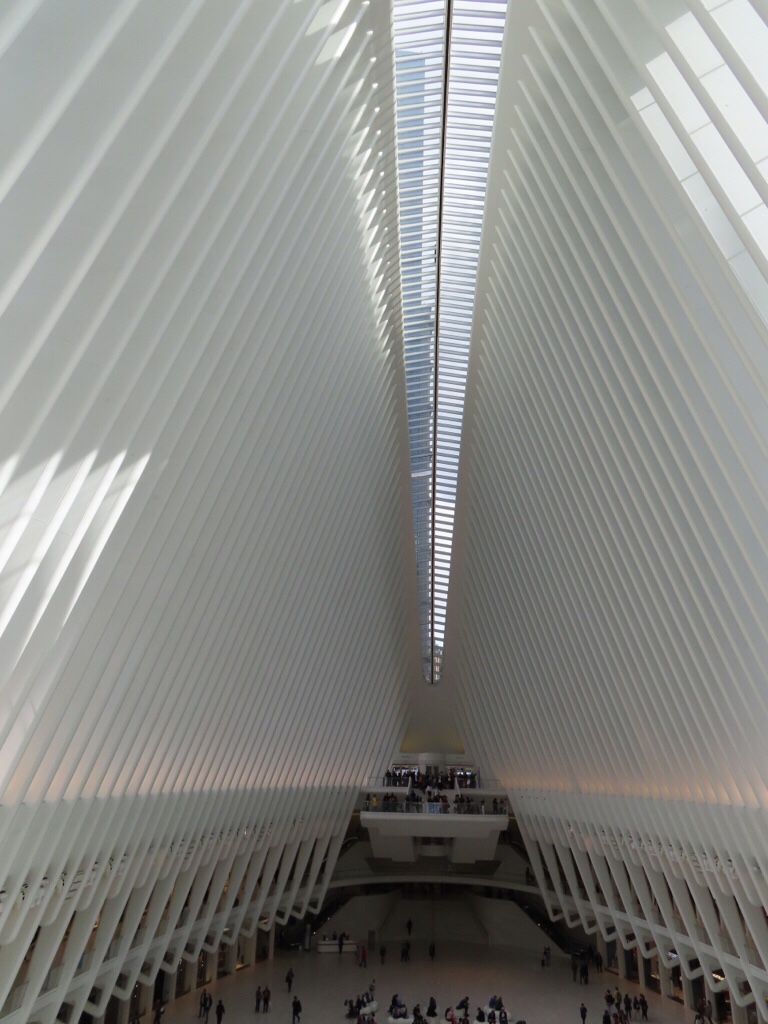 The Oculus was our last stop, above ground a striking white edifice with spiky steel ribs and below a futuristic transport hub and shopping centre.