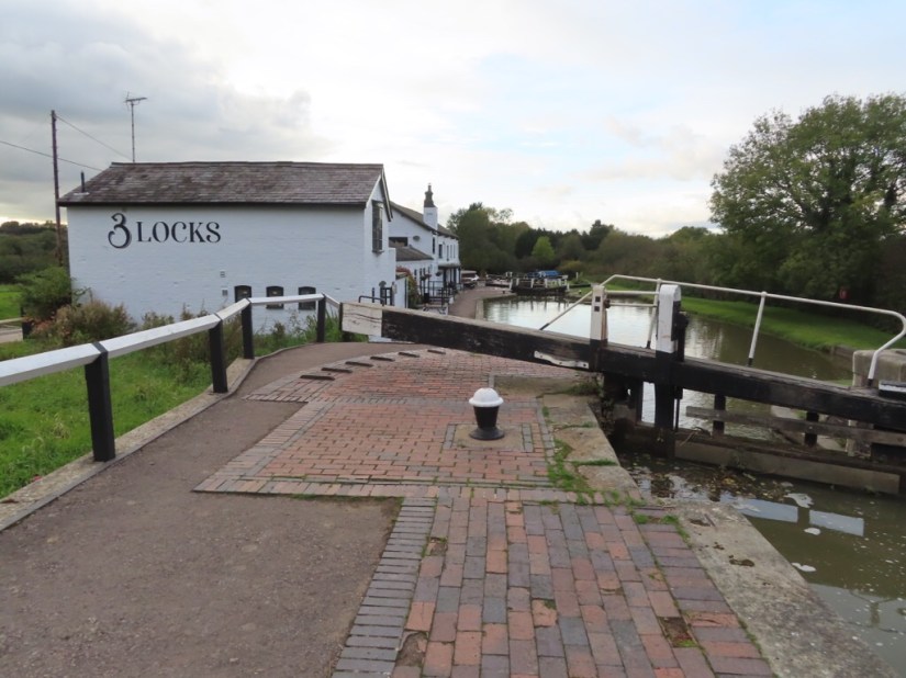 We stopped for lunch then refreshed, continued to Soulbury and the Three Locks. As we arrived another boat had just come through, so they were in our favour, and if they could come through just a single boat, then so could we. It was hard work though, working all three locks on our own, with Chris on the boat steering and me working all the paddles and gates. I did manage to get Chris to close one set though … just so he could have a go! At the end we were quite pleased with ourselves!