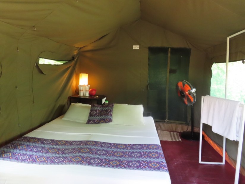We arrived at Wilpattu National Park late morning after a short drive west. We are staying at a tented camp run by Big Game Camps and were shown to our cute little tent with all mod cons – power, lighting, a double bed, and bathroom with loo and shower.