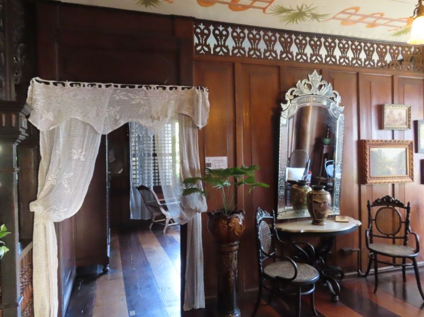 The Casa Gorordo was built in 1850s by a wealthy merchant and was once owned by the first Filipino Bishop of Cebu. It is an interesting mix of Spanish and native building techniques with lower walls of coral stone and the upper floor of hardwood fixed with wooden pegs. The interior gives an idea how the rich lived but also shows how the house was kept cool by large windows, an open-plan interior with only curtains rather than doors and pierced woodwork to allow air circulation.
