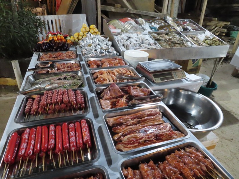 Talking food, it has been generally ok with a lots of pork dishes as well as fish and veg for me, but the veggie options became rather monotonous for Chris who has been starting every day with an omelette and resorting to pasta and pizza or more than one occasion! It’s been hard to really work out what is typical Filipino cuisine as there seems to be such a melting-pot with influences from all over. There is definitely a sweet and salty thing going on and also anything that helps preserve food like using vinegar in adobo stews and dried fish as flavouring. The kalamansi or Philippines lime is a small juicy citrus fruit and is everywhere, in marinades, dipping sauces, drinks and to squeeze over grilled food and even papaya! Grilled meat or fish served with rice is common, but there are also stews and stir fries like pinakbet – steamed veg with a local fish sauce (veggies beware), kare-kare – a stew with peanut sauce, humba – a pork stew with black beans and soy, tinola – chicken and veg in a ginger broth, sinigang – stew cooked in a sour broth, chop suey made of stir fried veg with soy sauce and Filipino style curry with coconut milk but not very spicy.