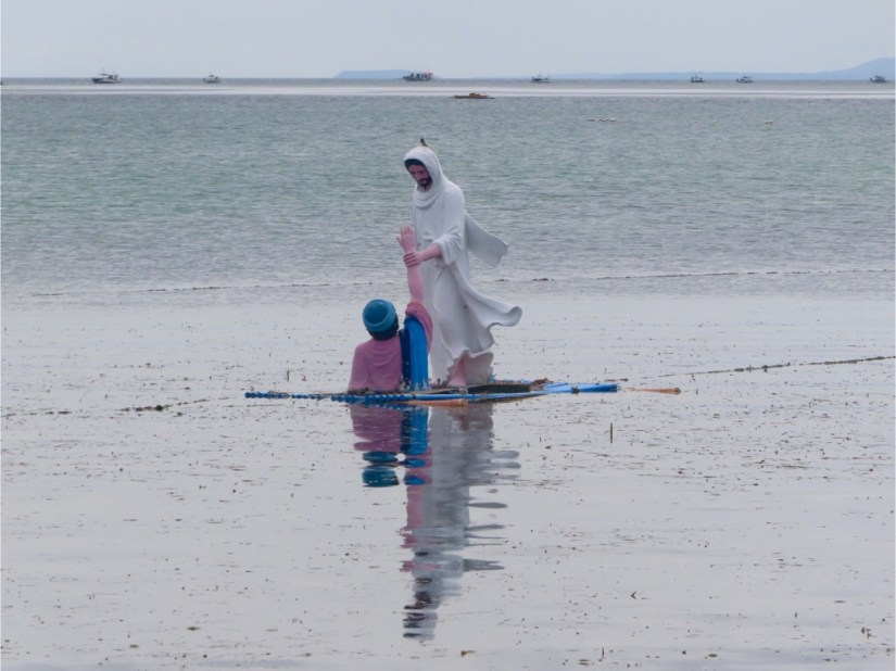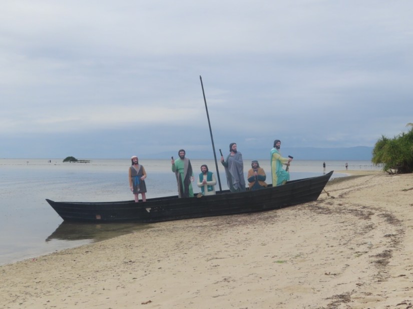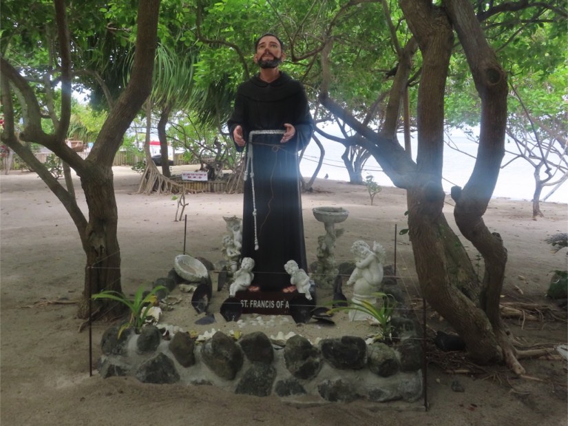 The islands are named for the camotes or sweet potatoes which thrive on the rocky topsoil here. We arrived on Pacijan, the largest of the four islands and are staying at Santiago Bay Garden Resort, an older hotel built into the cliff overlooking the white sands of Santiago Bay with an interesting aesthetic which relies on painted concrete. We arrived on the Chinese New Year and there were lots of Filipino and Korean families there for the weekend, with the shallow waters of the bay ideal for small children.