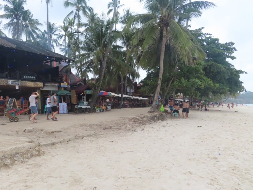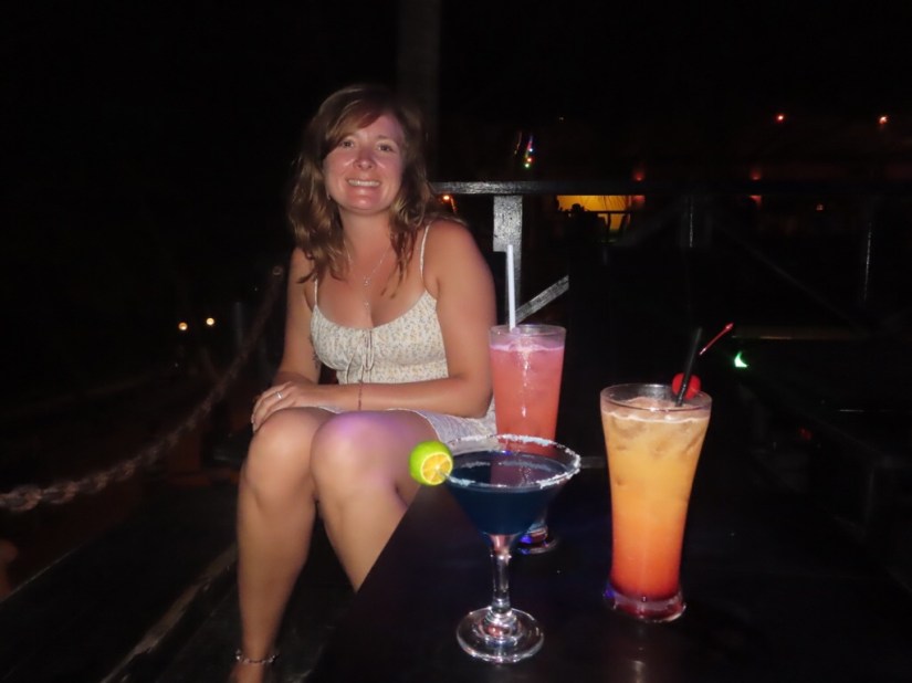Unsurprisingly, Chris chose not to swim and I couldn’t resist! As we emerged, some schoolgirls were tucking into a post-school snack of a crispy disc with what looked like chocolate sauce, but was coconut syrup … yum!
