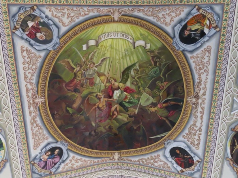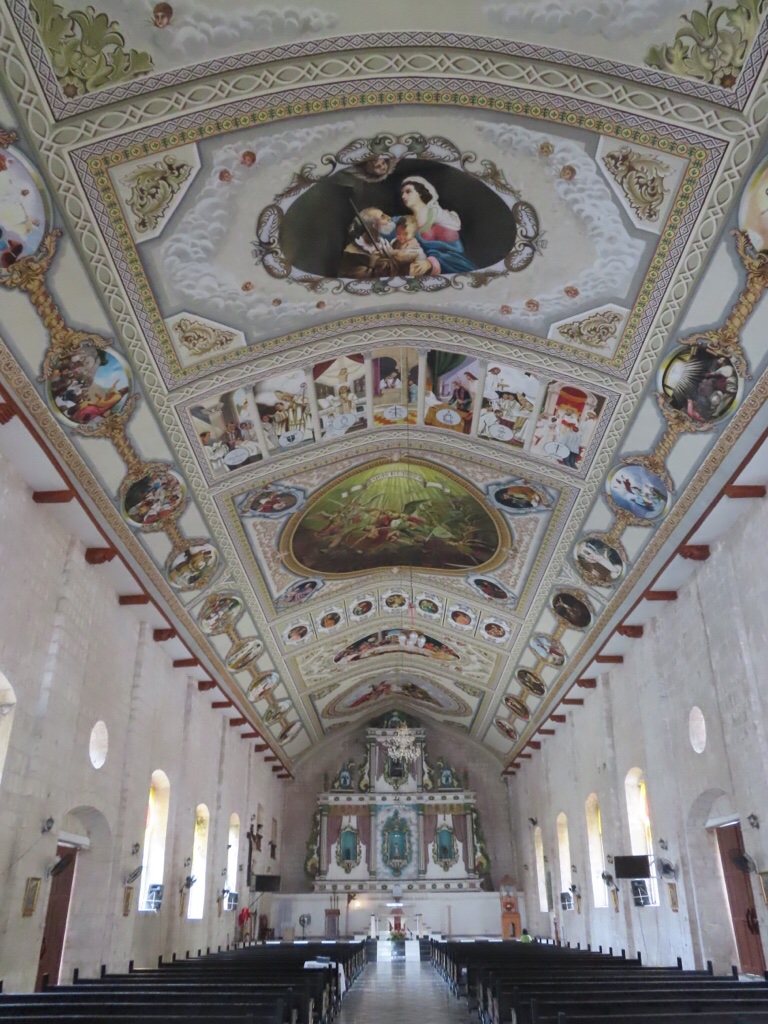 The ceiling is painted with scenes showing the arrival of Magellan and the planting of the cross …