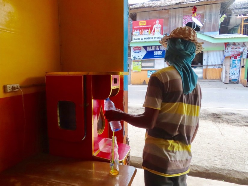 There is one in the hotel we can use to refill our bottles. But we have never seen a water vending machine before … costing just a few pesos to fill a litre bottle.