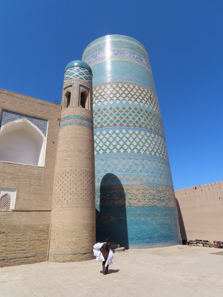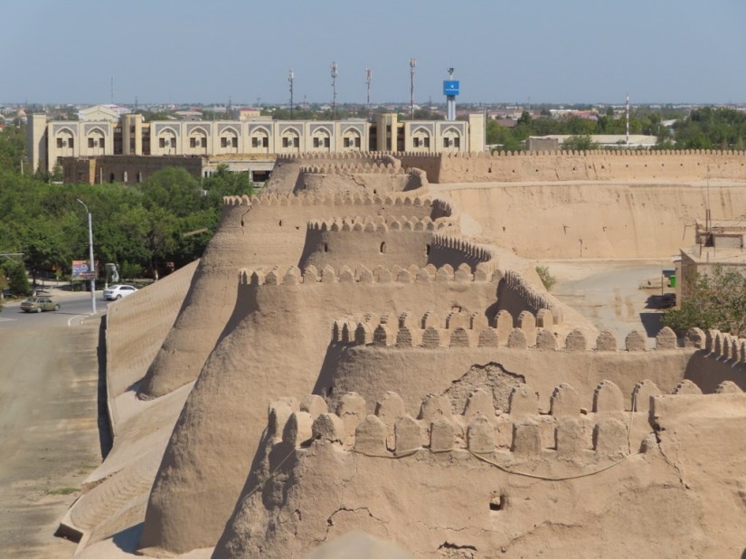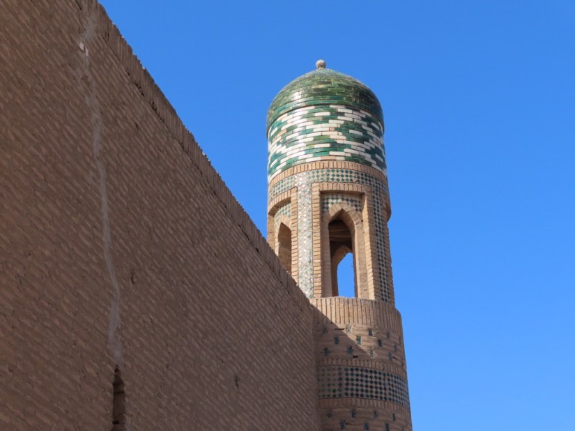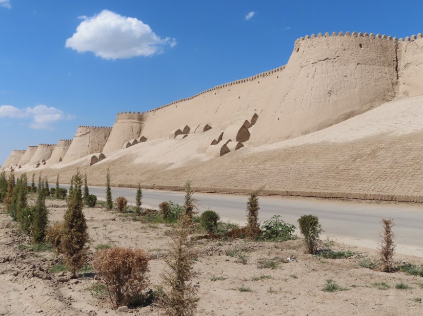 We knew we had arrived in Khiva when we saw the wall. This huge wall surrounds the city and contains four gates which would seal the town from dusk to dawn and offer protection to a city plagued by nomadic raids and desert storms.