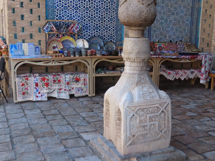 That just left a teapot … since we don’t own one, and as the same china is used in every hotel and restaurant here, we checked out the kitchenware stores by the bazaar in Samarkand. We now have a teapot and tea dishes called piala, saying made in Uzbekistan on the bottom, to pack into our luggage … just like this one!