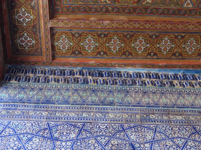 And as for what we’ve seen … well I realise there are just far too many photos … but we have seen so much! After so many madrasas and mosques, I had hoped to take better photos of them but the confined courtyards, often with trees and always with tricky light made it really hard to give true impression. Also, we couldn’t quite understand why the backs of the gateways weren’t tiled, just to finish the job!