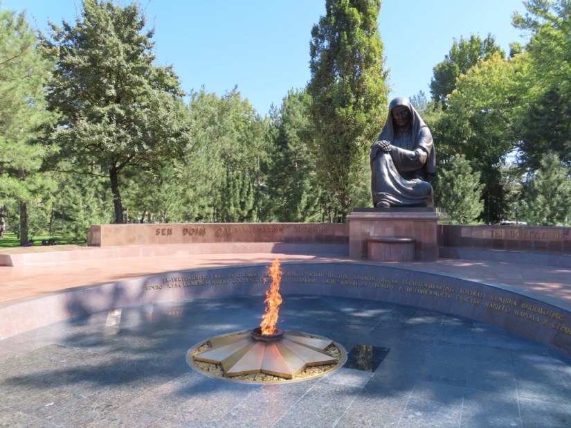 Along the way we saw the Glory and Memory Alley in honor of the soldiers who died in World War II, the statue of a Mourner Mother with a Quenchless Flame circle in front, the Turkiston Palace concert hall and the extraordinary outdoor summer concert hall – a marvel of Soviet architecture.