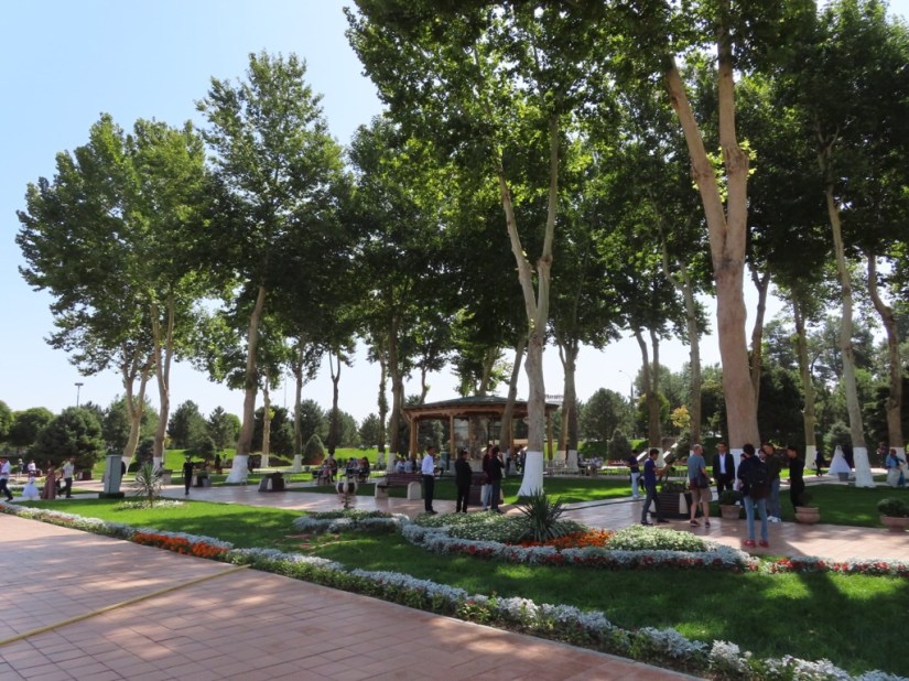 A short way further and we stopped for lunch at the Cinara chaykhana or teagarden, with plenty of shade and a stream running through. We sat under a 800 year old sycamore tree believed to be the great grand daughter of the very tree sat under by Alexander the Great in 328 BC when he first tasted Plov! We munched our way though cheese filled lavash and salad before returning to Tashkent.