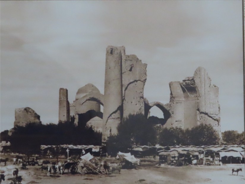 Shakhrisabsz was the birthplace of Timor, the last of the great nomadic conquerors whose Timurid dynasty included most of Mongolia, Central Asia and the Caucasus. Originally called Kesh, once he was ruler Timor renamed the city Shakhrisabz, which means ‘Green city’ in Persian and had Ak-Saray or the White Palace built. This was huge and elaborate and took 25 years to complete and a contemporary source says they were astounded and charmed by the architectural miracle. On the other hand, it is estimated that his military campaigns caused the deaths of 17 million people (that’s 5% of the population at that time) and the destruction of the culture, libraries and historic sites in his wake was incalculable!