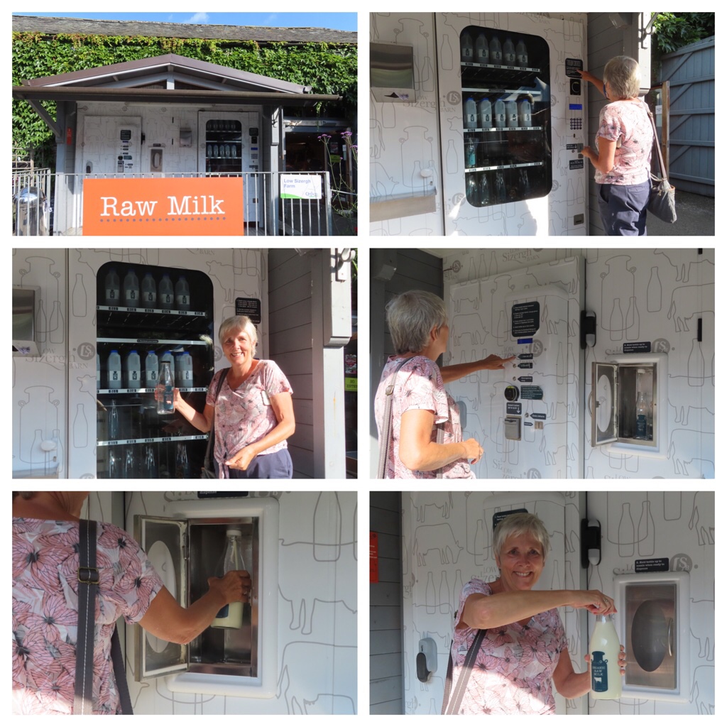 As we left we saw a sign for a farmshop and we picked up some Lancashire cheese made on the farm and cake. They also had a milk vending machine, selling whole organic milk from cows we saw being milked … and we confirm it was lovely for porridge and muesli.