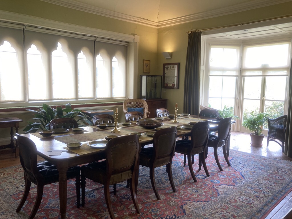 The dining room was cosier, but there is still good colour in the hessian wall covering and the fireplace is a joy.